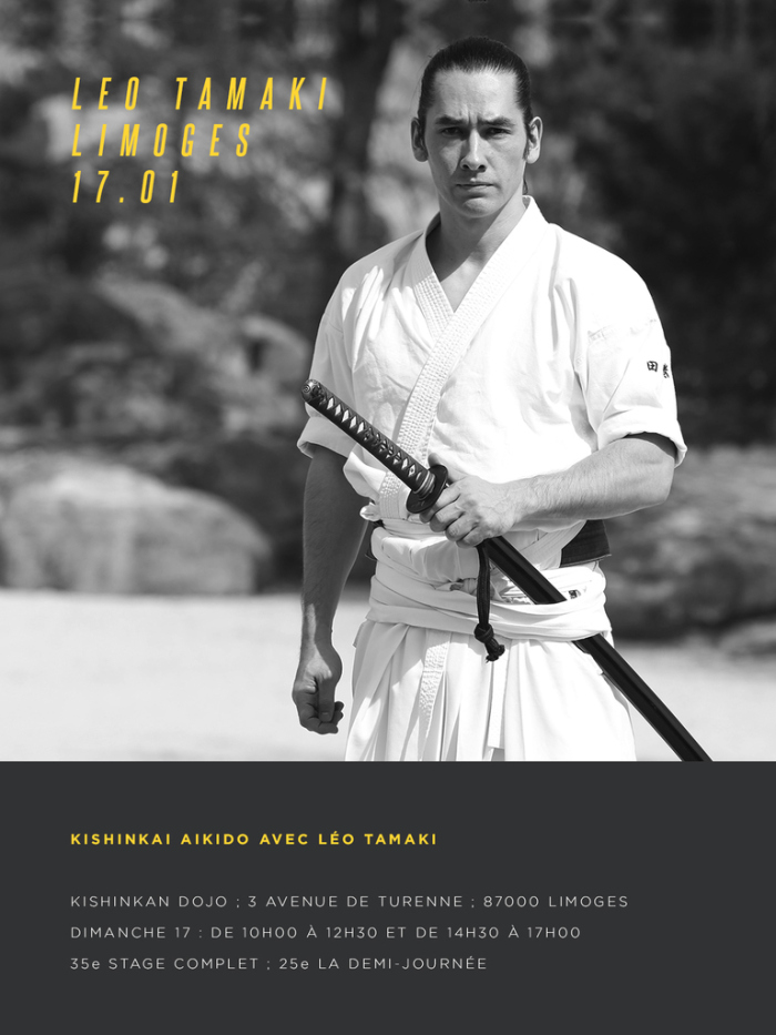 Samedi 16 janvier, je serais comme d’habitude au Dojo Bordeaux pour donner mes deux cours habituels, puis je prendrai la route direction Limoges et le Kishinkan Dojo ou Léo Tamaki viendra pour la première fois animer un stage.