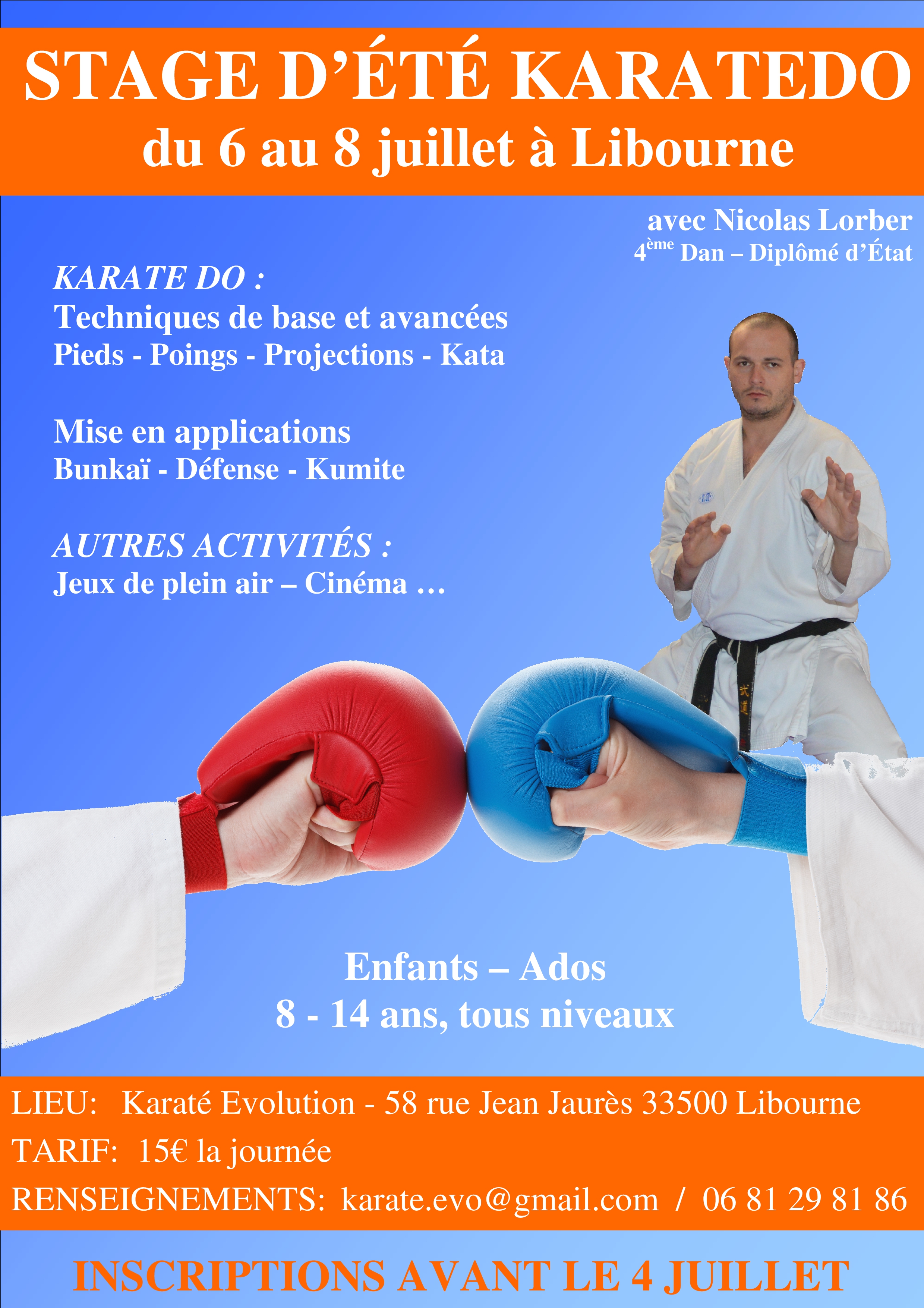 Lieu: Karate Evolution – 58 rue Jean Jaurès 33500 Libourne