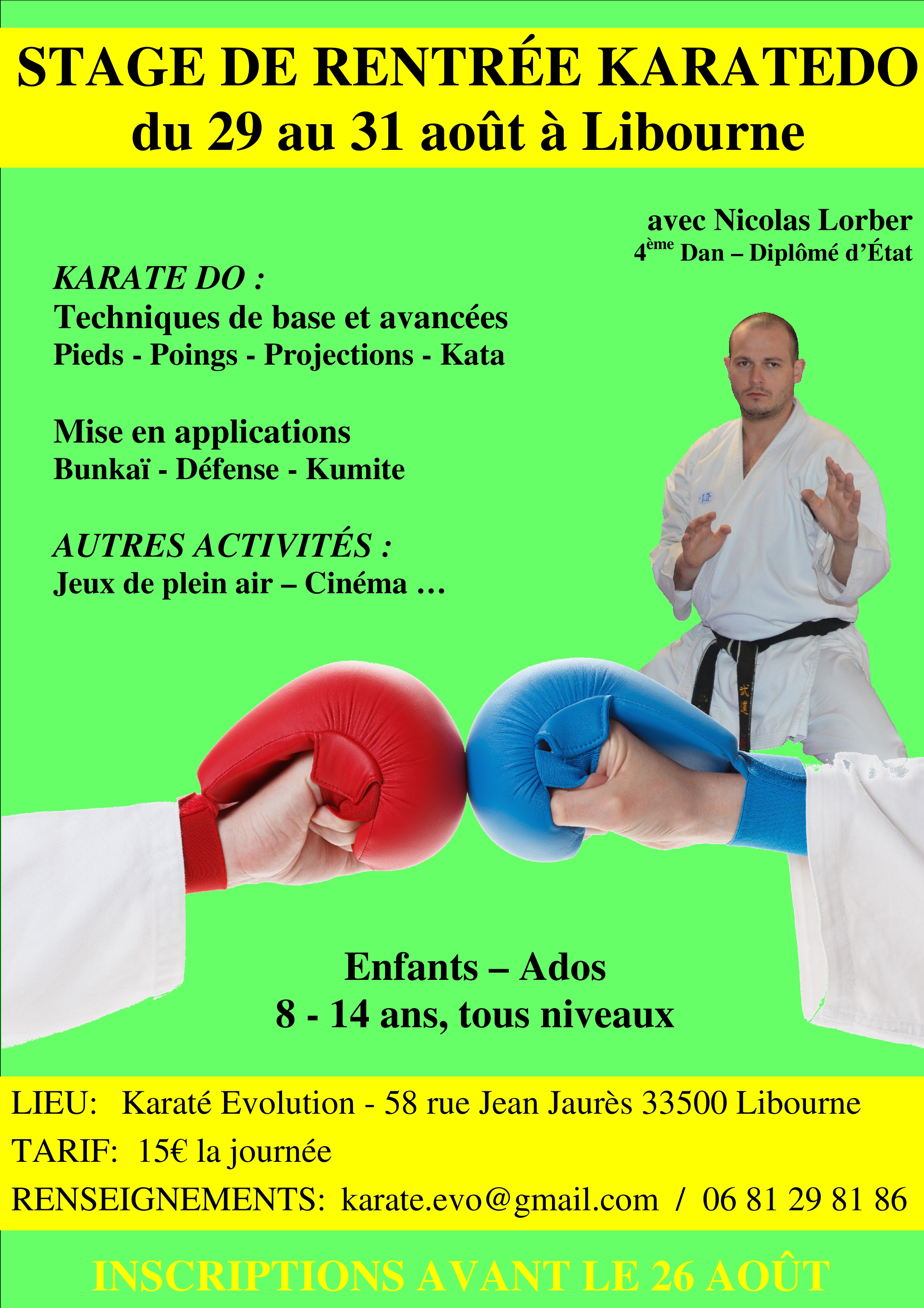 Renseignements: karate.evo@gmail.com ou 06 81 29 81 86