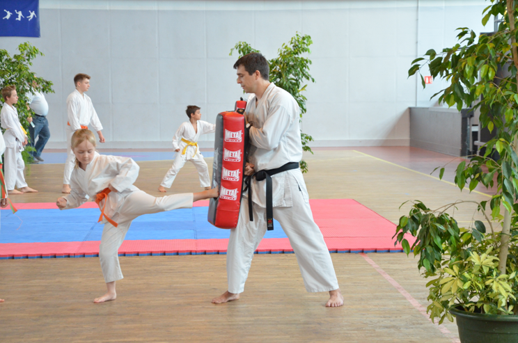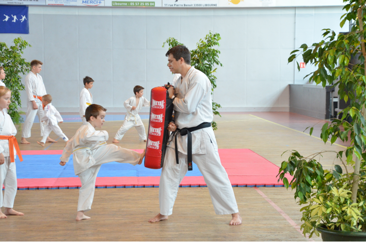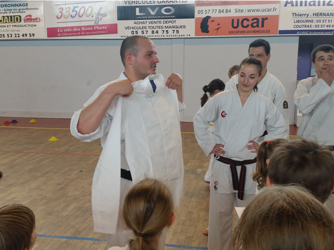 Les rôles habituels se sont alors inversés puisque ce sont les enfants qui ont enseigné le Karaté à leur parents. Le salut, la position, apprentissage d’un coup de pied, puis d’un coup de poing, pour terminer par le blocage. Un très beau moment d’échange auquel beaucoup ont participé. Et j’en suis vraiment ravi pour les enfants et les parents qui ont bien rigolé et apprécié cet instant.