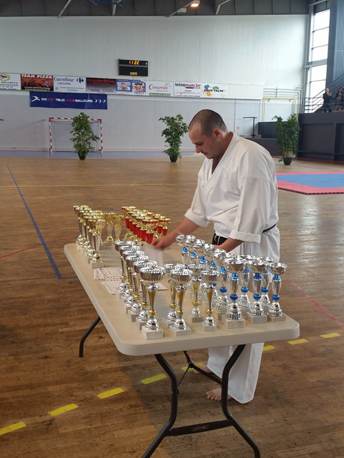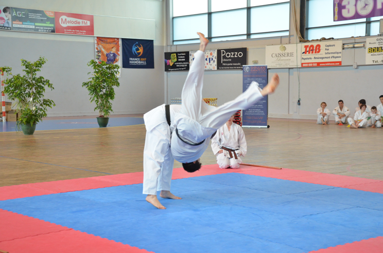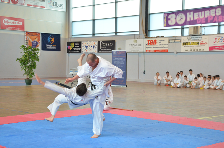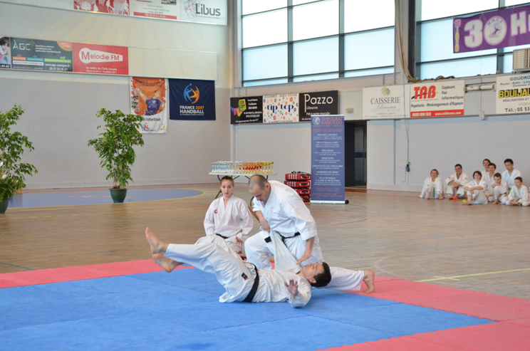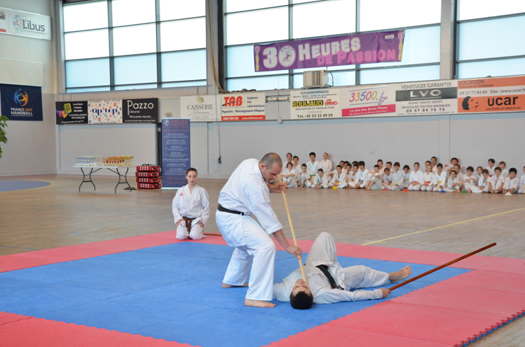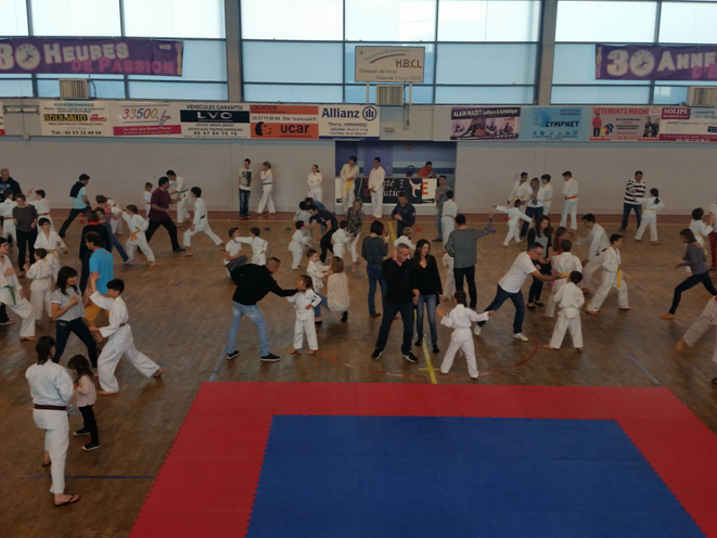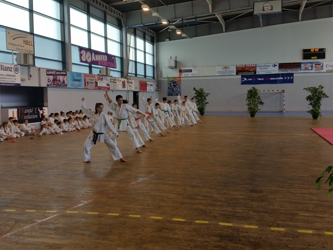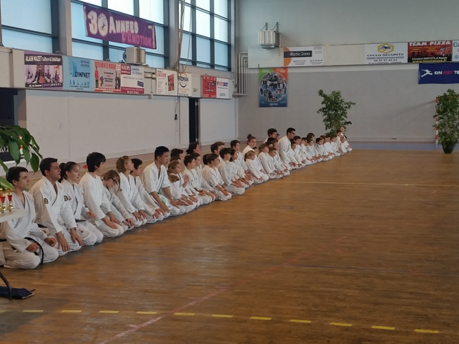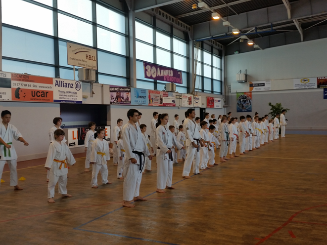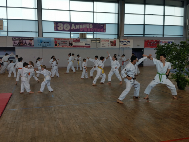 Pour commencer, les 55 enfants présents et les quelques adultes qui les ont accompagnés pour les guider nous ont offert une bien belle démonstration de près d’une heure (65 personnes de 4 à 50 ans). L’occasion de montrer à tous les progrès techniques de chacun, sans oublier les valeurs de respect, discipline, entraide, étroitement liées à notre pratique, et indispensables pour réussir tous ensemble une démonstration de qualité.