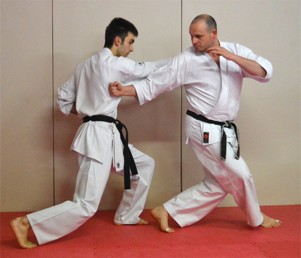 Au contact, il faudra frapper pour se donner de l’espace. A distance, il faudra prendre en considération le déplacement d’Aïte afin de ne pas faire une technique trop tôt ou trop tard. Dans les deux cas, il faudra aller à la rencontre de l’autre et s’harmoniser à son intention.