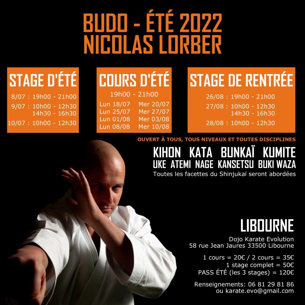 Pour tout renseignement : Nicolas Lorber 06 81 29 81 86 ou karate.evo@gmail.com
