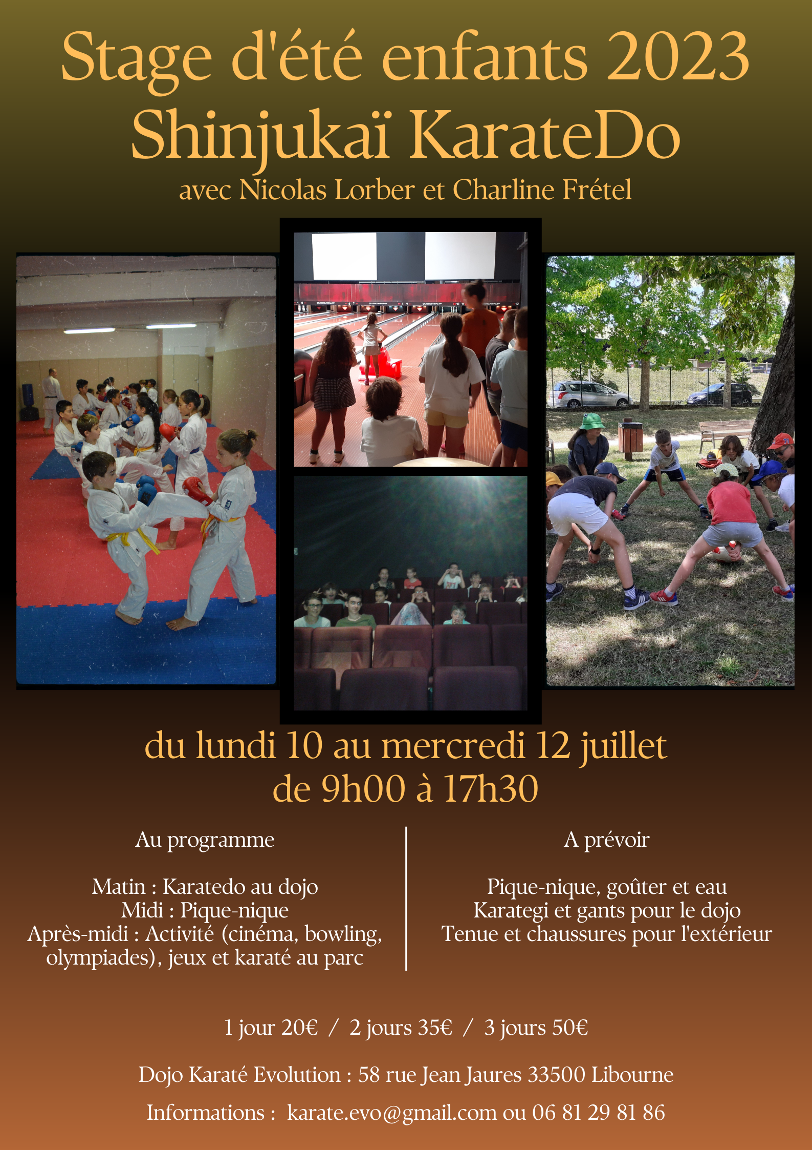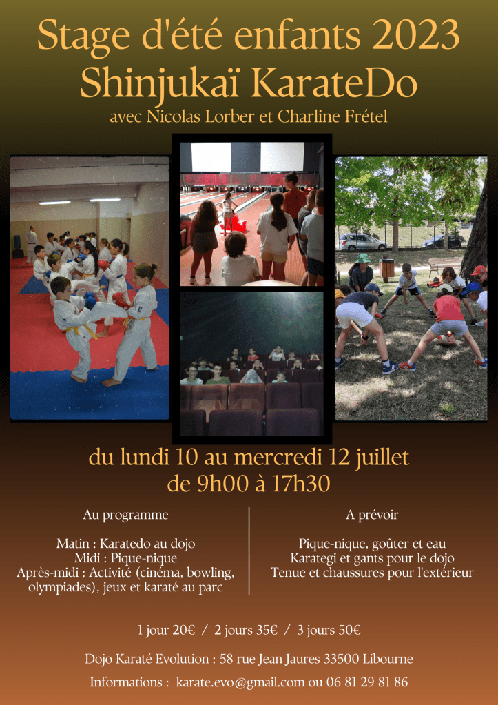 […] d’été 2023 du Shinjukaï KarateDo.Pour les enfants, du lundi 10 au mercredi 12 juillet : infos ici.Pour les adultes, du jeudi 13 au samedi 15 juillet: infos […]