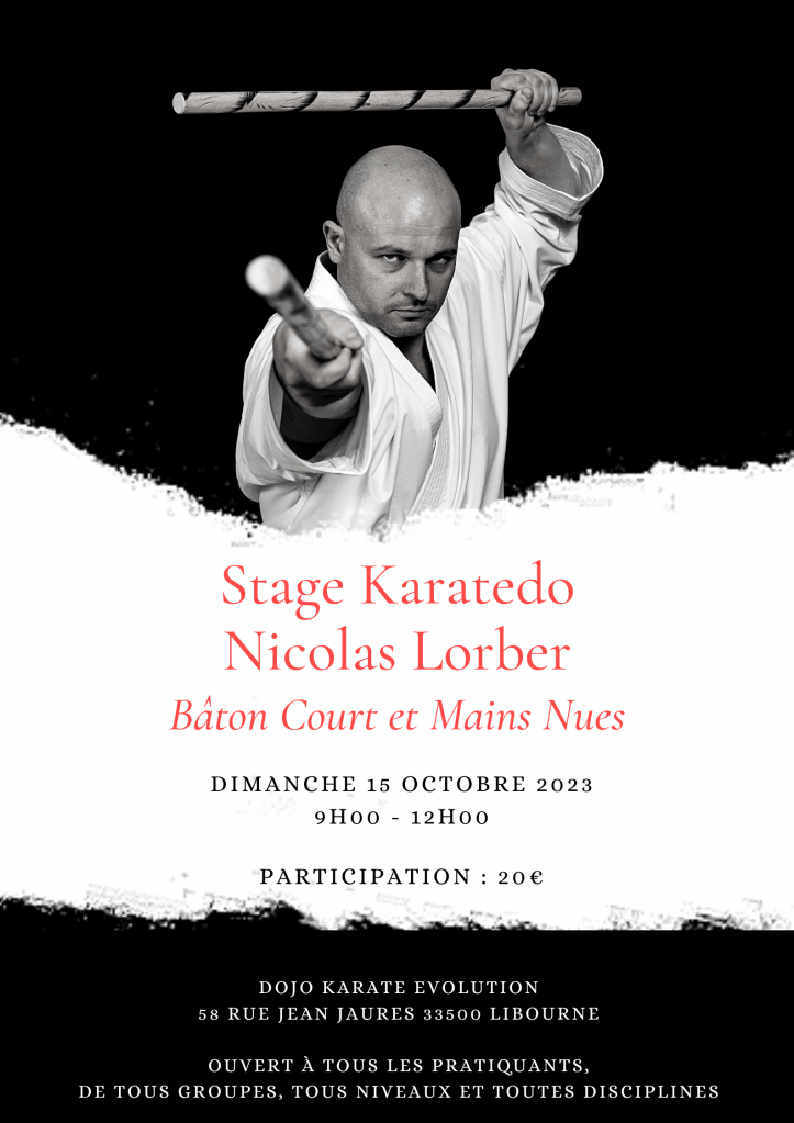 Nous nous retrouverons au dojo du Karaté Evolution à Libourne de 9h à 12h pour 3 heures de pratique martiale autour du maniement du bâton court et des similarités à mains nues.